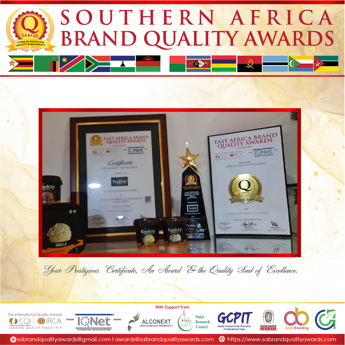 Southern Africa Brand Quality Awards (SABQA) was established with the sole purpose of recognizing excellence for companies, businesses, startup enterprises, firms, individuals and leaders for their positive contribution to the region.